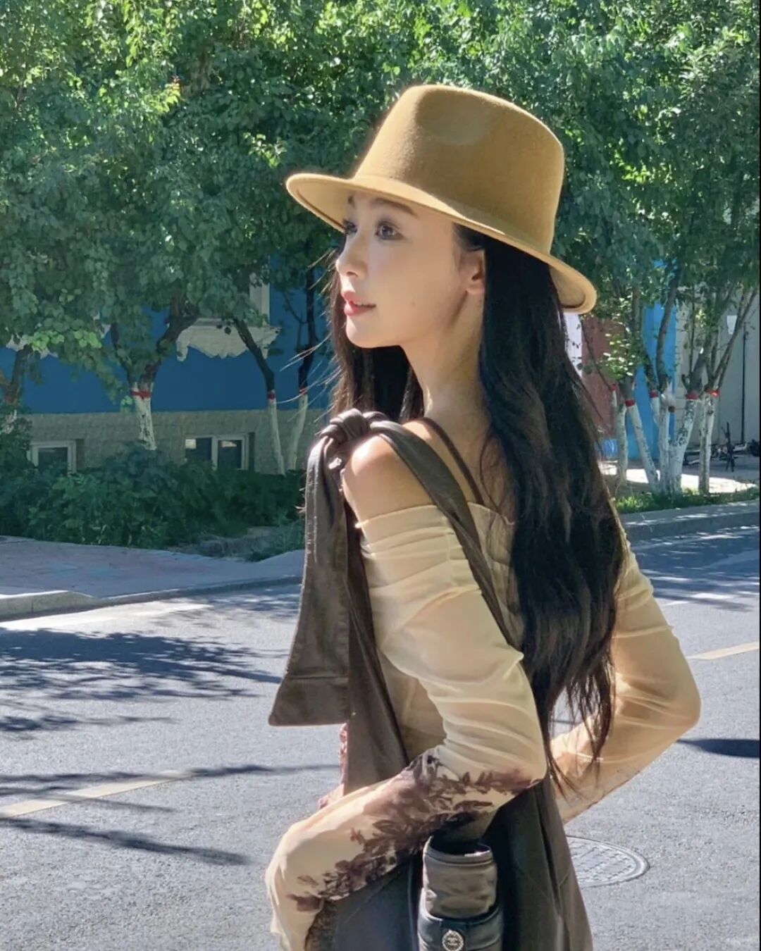 如果休闲时尚是你的最佳适配风格,那么周洁琼的这组穿搭会成为一个典型示例。通身维持同一色彩维度,整体采用低饱和米棕色作为搭配关键。以米色修身吊带背心为内搭,外着浅棕色休闲运动套装,简约休闲却不失时髦色彩。以这身舒适休闲look亮相长途跋涉的徒步旅行,一定将你的实力完全展现。