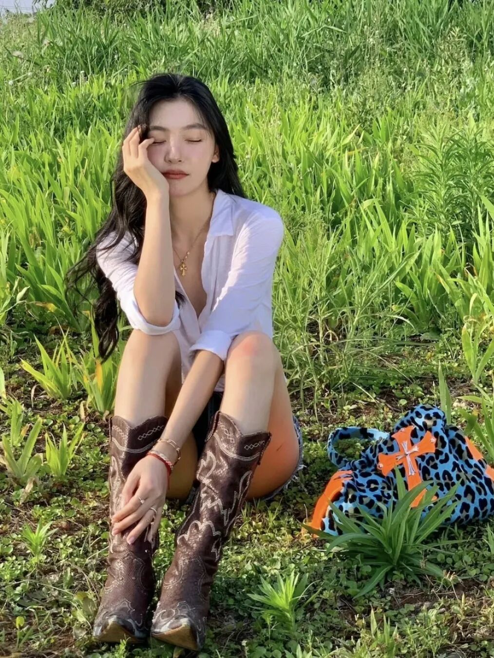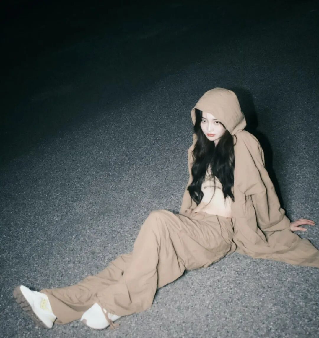 哪怕是全身的米色也能将自然风情完美展示,宁艺卓以蕾丝渔网透视套装作为专辑概念照的搭配。整组造型的吸睛点就是破破烂烂的设计风格,以及不规则的流苏边饰和飘带。将原古神女风范演绎的淋漓尽致,漫步在通天低饱和灰土色的自然“乐园”,展现自由之极。