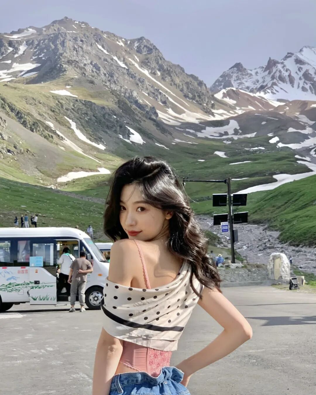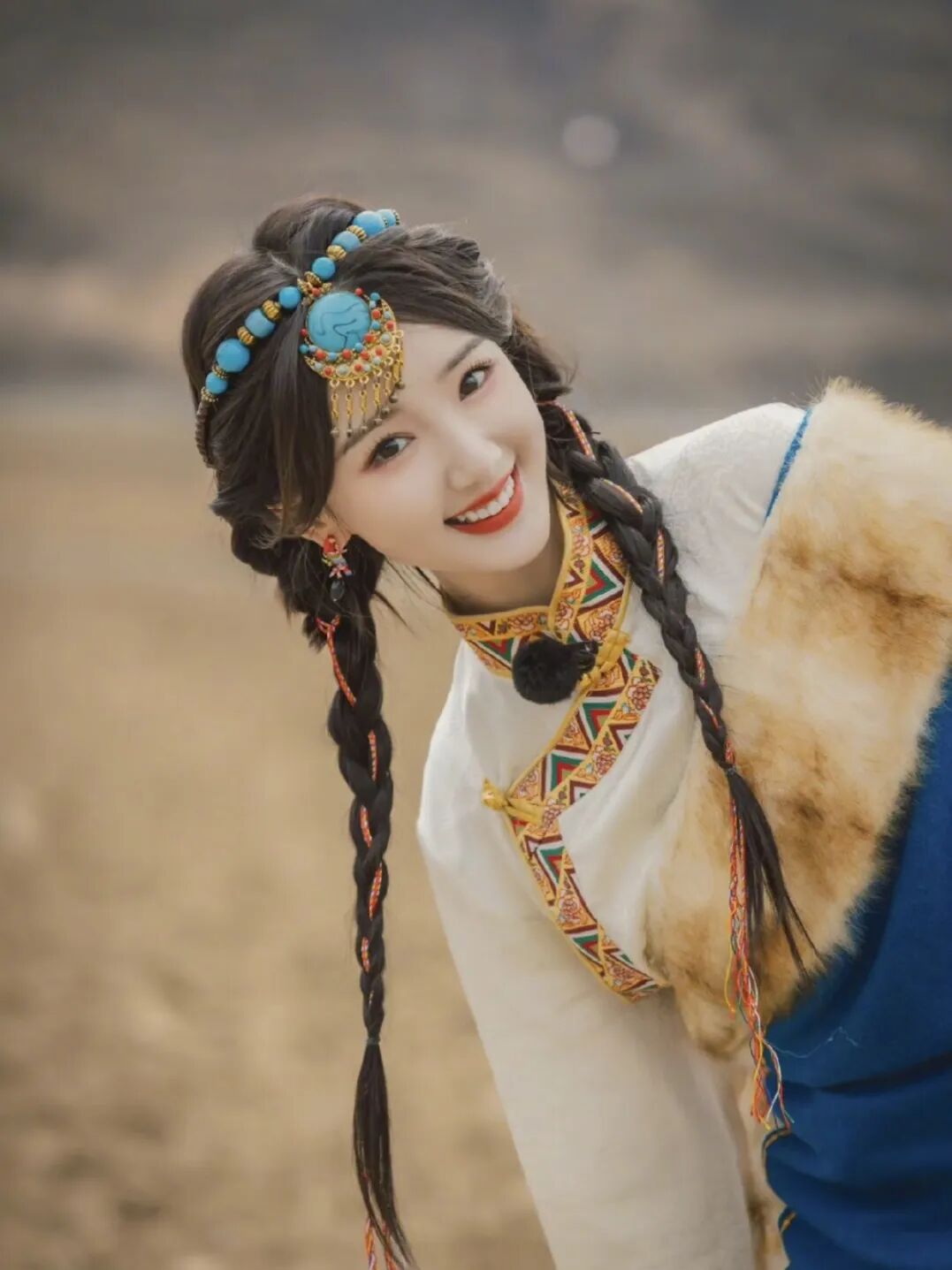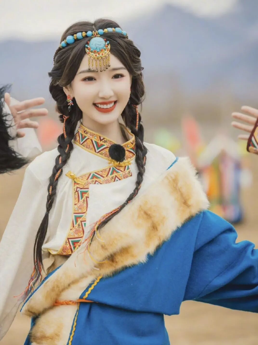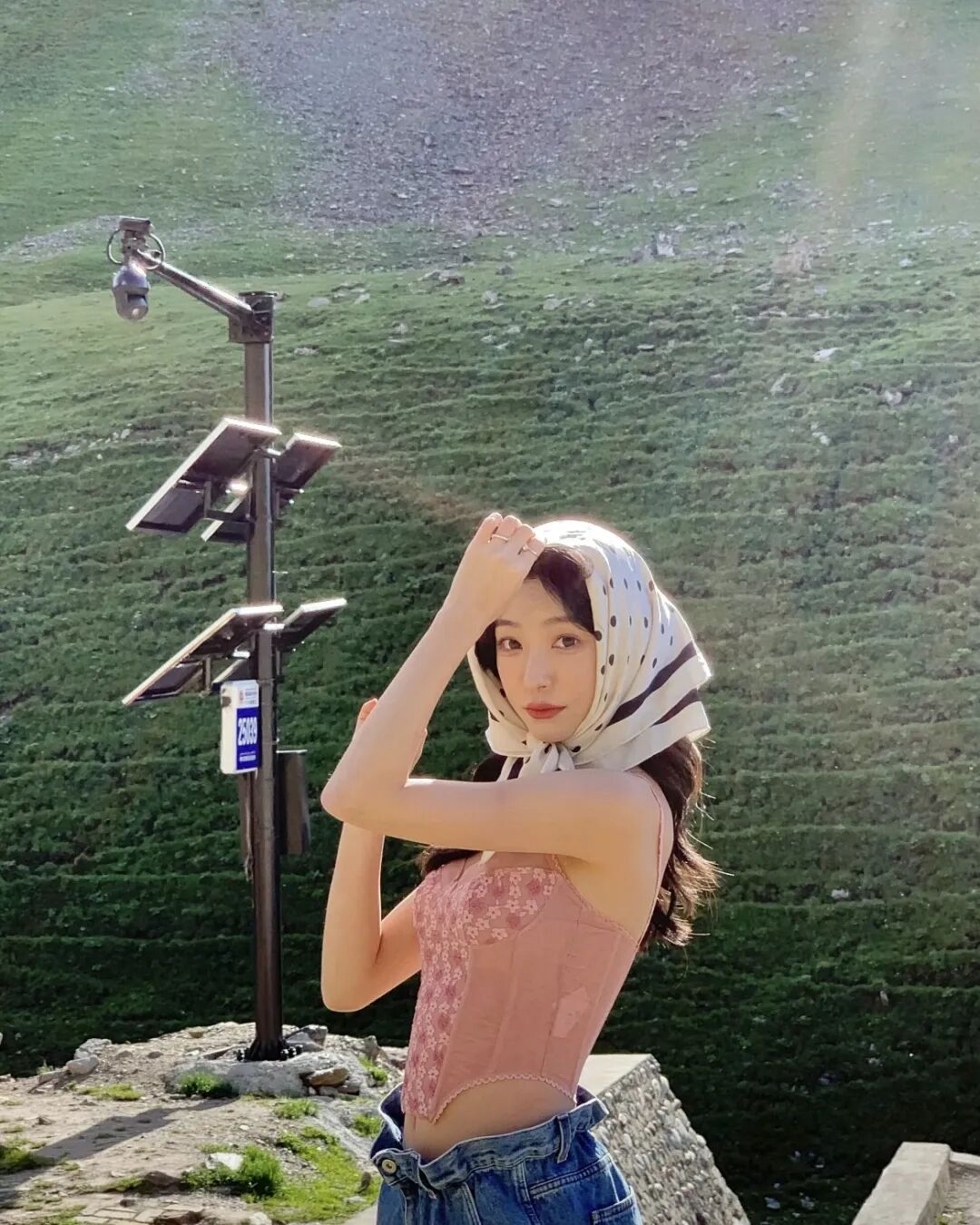 当你来到与城市景观截然不同的民族风情自然环境,一套带有当地特色的旅行写真再合适不过。让我们把目光放到毛晓彤的这组搭配,带有少数民族特色的斜襟搭扣以及特殊纹样边饰。最引人注目的当之无愧的是她的头饰,哪怕是最难以驾驭的蓝绿色也能被其演绎的娇嫩欲滴,明眸皓齿、含苞待放的塞外公主就在你的眼前。