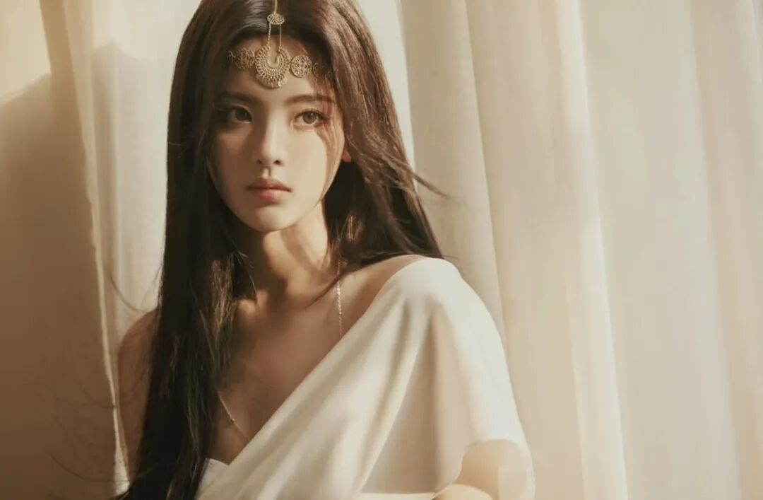 如果你也对古希腊神秘而又富裕的故事感兴趣,那么杨超越的这组清冷风格写真将成为你的搭配参考。同样以白色作为主导色彩,辅佐带着闪光的金色碎钻链,漫不经心的白绸丝巾斜搭在肩上。随之产生出一丝妩媚风情,好似远古神话传说中温柔雅致、千娇百媚的女神形象。