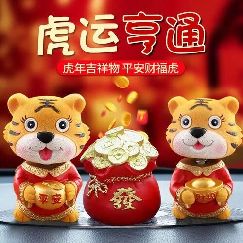 2022新款生肖虎汽车摆件虎转钱坤虎虎生威w虎年大吉暴富吉祥挂件