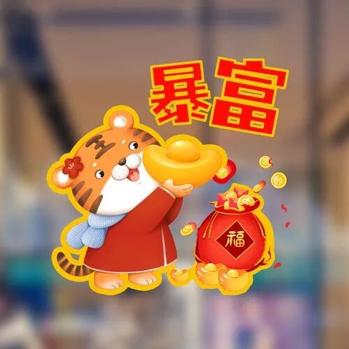 2022网红虎年静电贴纸虎年大吉暴富玻璃橱窗装饰贴画pvc无胶自粘
