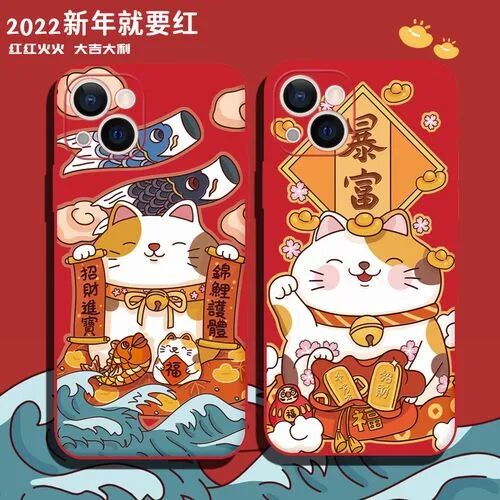 2022红色一夜暴富符猫苹果13手机壳iphone12mini新年11招财xs max中国
