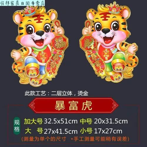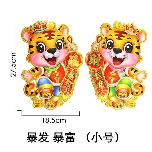 虎年生肖2022过年贴画玻璃春节装饰财神门贴富贵平安 暴发暴富小号 18