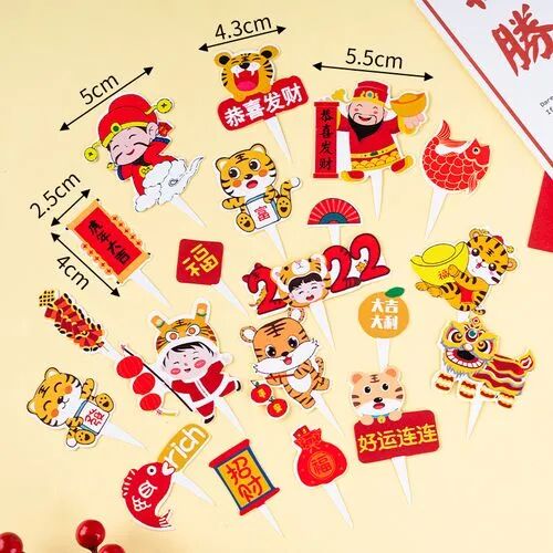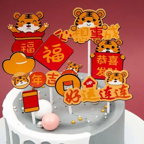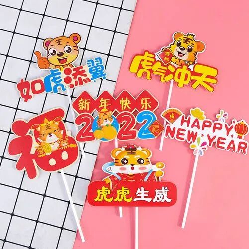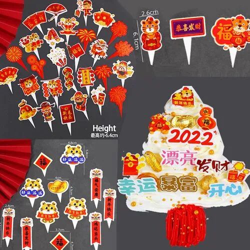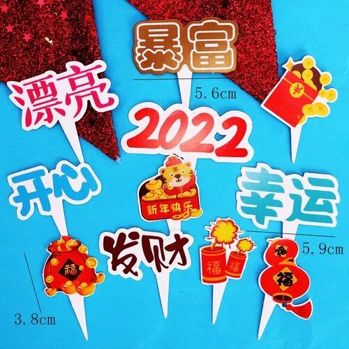 蛋糕装饰插牌2022年新年虎年大吉恭喜发财好运暴富甜品台插件装扮