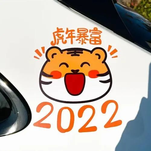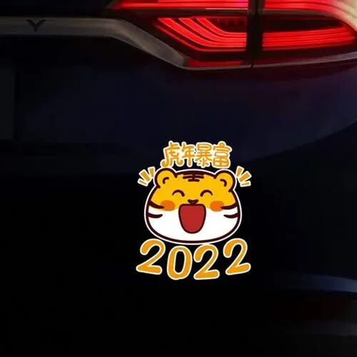 2022虎年暴富汽车贴纸可爱搞笑车身贴后档玻璃车尾装饰画抖音 单虎16*