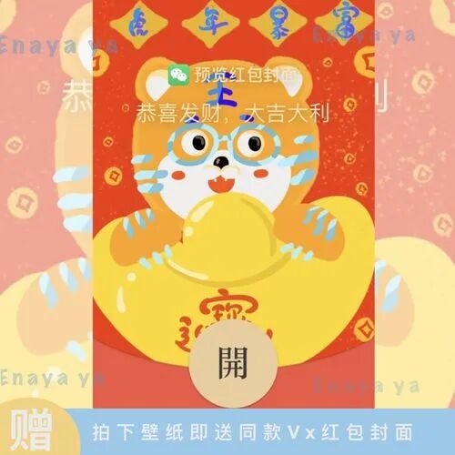2022新年可爱enayaya虎年暴富发财壁纸送微信红包封面序列号