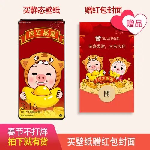 猪八吉虎年暴富 红包2022虎年购壁纸头像赠送同款微信封面皮肤
