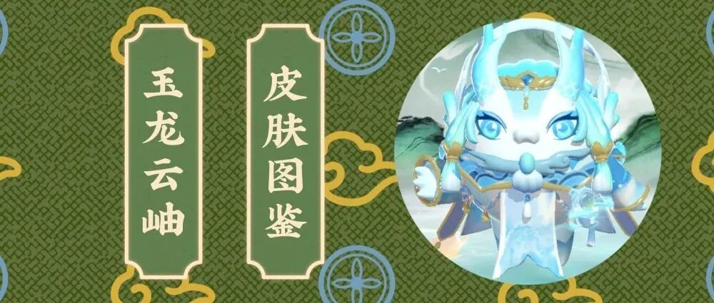 玉龙云岫的装扮配以碧蓝与金色交织,玲珑精致的珠链装饰着衣裙,腰间悬挂着一枚散发神圣光芒的玉佩,仙气之中带着一丝美艳。当玉龙云岫仙气飘飘地腾空跃起时,甜美可人的她眯起美眸,脚下碧蓝莲花绽放;当玉龙云岫轻盈地滚动前行时,身后留下镶嵌金边的蓝色纹饰拖尾,高贵动人。玉龙云岫同玉龙扶风配套的衣着表明着两龙亲密的关系,同时也是难以露面的神秘瑞兽。