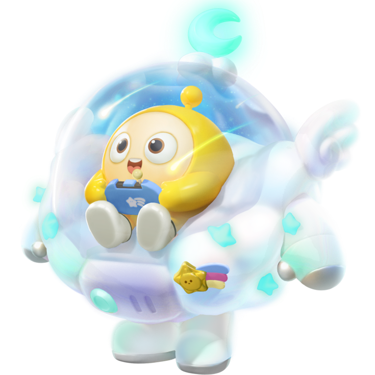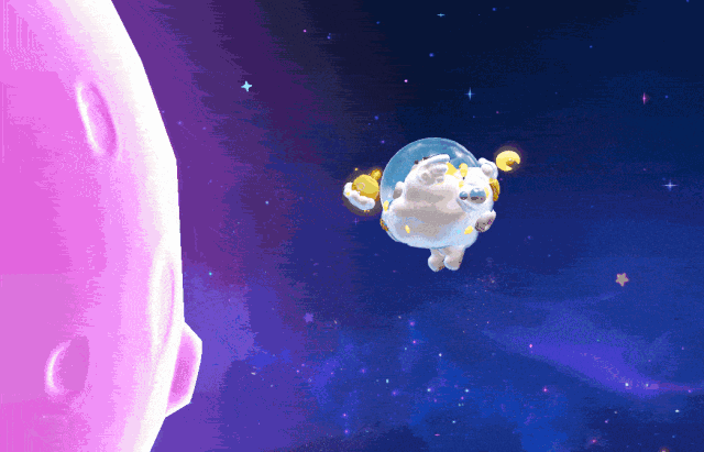 贝贝担任着太空船长的职务,操纵着独特的太空人飞船,飞船外型像云朵般柔软舒适,贝贝坐在透明的操纵室中,可以看到太空中的神秘行星。小小的月亮在太空人飞船顶舱旋转,船身还装饰着亮闪闪的小星星,还有两只洁白的小翅膀,缤纷的星球在太空人飞船周围环绕,看着梦幻又酷炫。