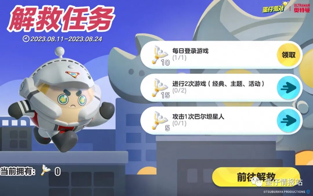8月11日,是奥特曼与蛋仔岛的特殊日子。这一天,全新的联动盲盒奥特曼角色携手走进蛋仔派对的奇妙世界,共同开启一场【光之蛋仔集结】活动。还有全新的【解救胜利队队员】活动开启,蛋仔们完成解救任务即可免费领取联动外观、联动动作、联动表情等丰厚好礼。今天情报蛋给蛋仔们介绍下解救活动的内容吧~