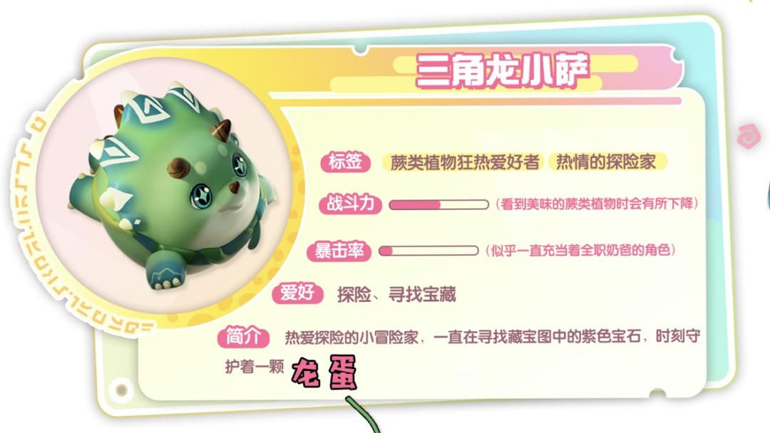 蛋仔们应该提前看到了三只小恐龙的新赛季皮肤吧,每只小恐龙都挺可爱的,不知道你们最喜欢哪一只呢?下面情报蛋把三只小恐龙的档案情报告诉大家~