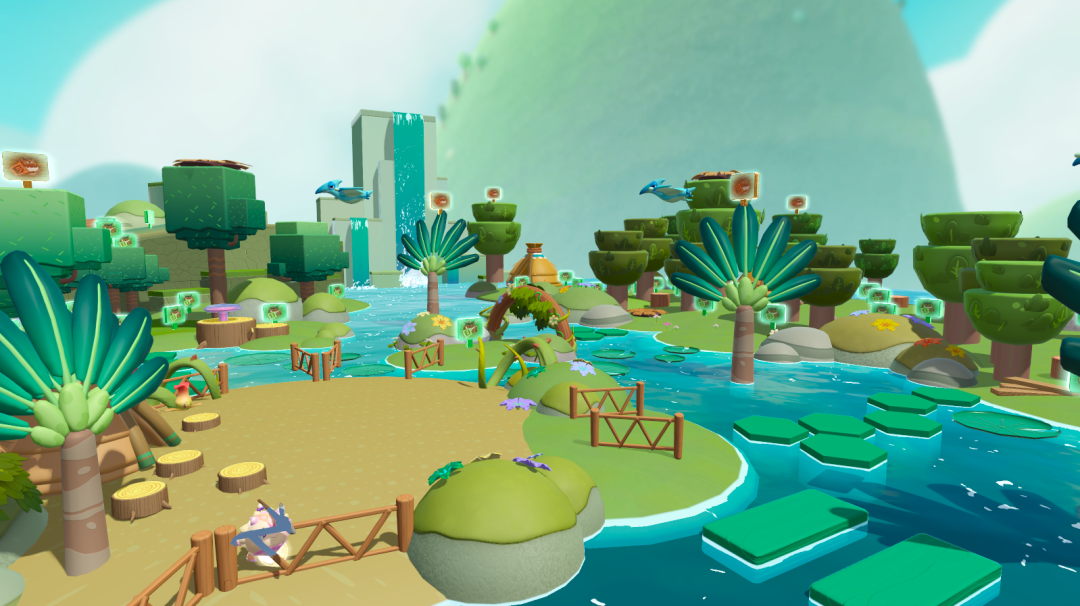 蛋仔们乘着翼龙在空中飞天翱翔,手持标枪,瞄准着地面上一个个高高低低的靶子。在努力训练的同时还能看见地面上壮丽的景色,碧蓝的海水清澈见底,海边的沙滩上生长着开花的仙人掌,仔细一看还能发现安放在窝中的恐龙蛋,这么怡人的环境不愧是恐龙们完美的栖息地。