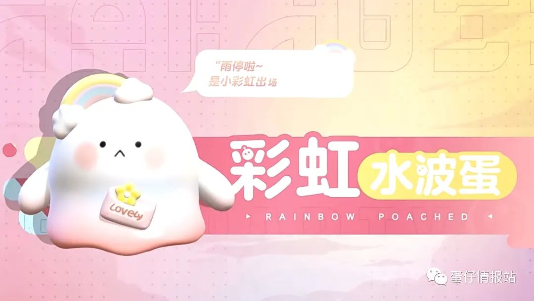 下完雨的天空出现了一道美丽的彩虹,听说遇见彩虹的蛋仔会变得更加幸运,彩虹水波蛋带着缤纷的彩虹出场,让垂着头的黄色小花变得生机勃勃。