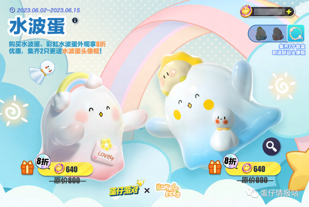 额外奖励:蛋仔们集齐水波蛋和彩虹水波蛋就能领取联动奖励【水波蛋头像框】。