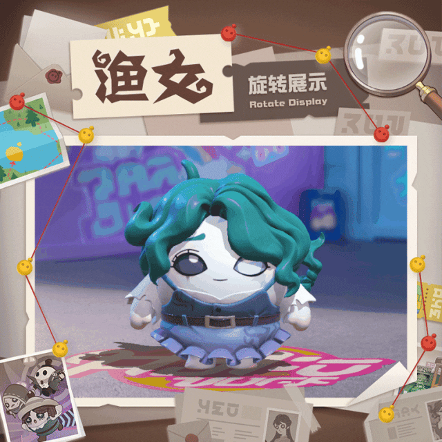 渔女:一头墨绿色的散乱麻花辫,海草攀附在深蓝色的长裙上,裙摆如海浪般飘荡,因为长期在海水中浸泡,渔女的皮肤十分苍白,一只眼瞳是深不见底的灰色,一只眼瞳是毫无生机的白色。