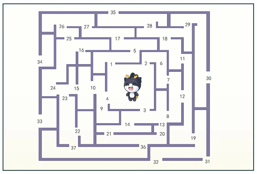 乌墨墨就躲在迷宫的中心处,可顶呱呱只能堵住其中一个缺口,如果选错了,乌墨墨就会顺利地逃出去,他该选择哪一个缺口呢?