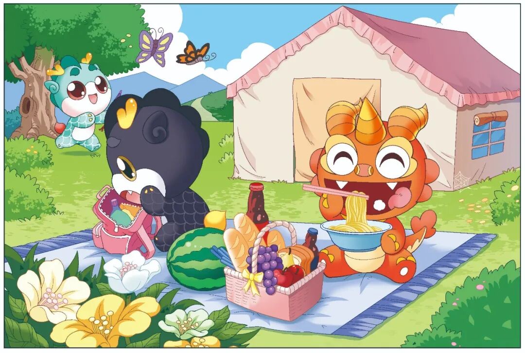 2.有四个人去露营,照片上缺的是亮晶晶。因为图中共有四双筷子,且顶呱呱手里拿着寒冰伞,所以可以知道有四个人一起来露营,缺的人是亮晶晶。