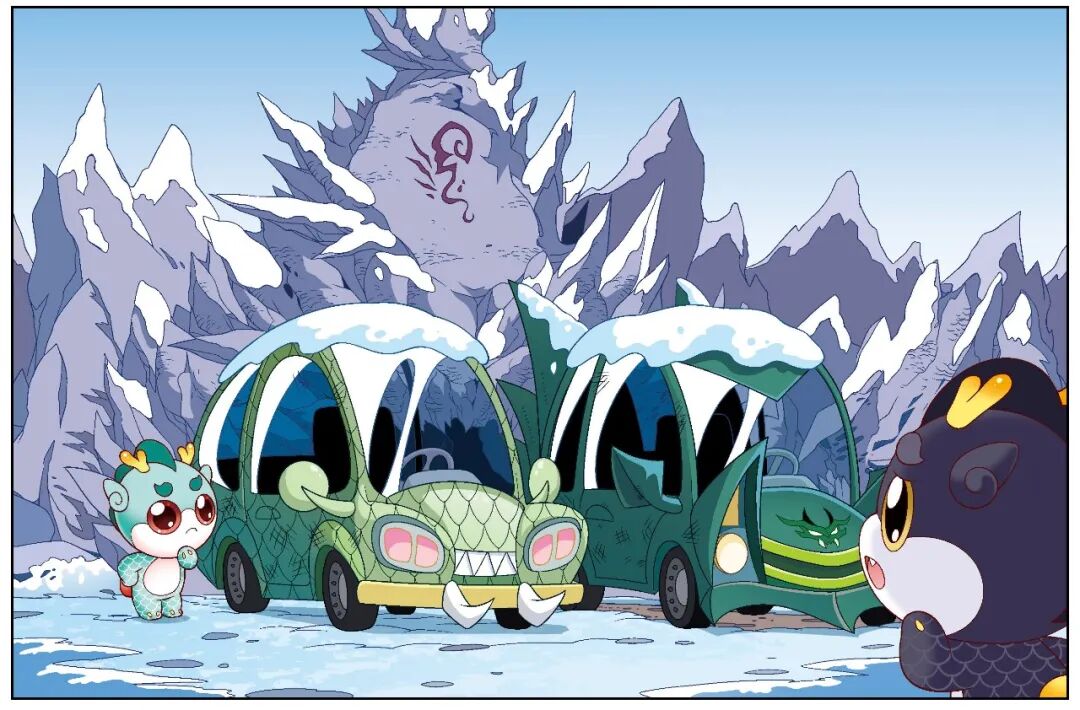 顶呱呱和乌墨墨循着车轮痕迹,一路来到了毒勒勒和绿幽幽住的山洞,山洞门口停了两辆车。