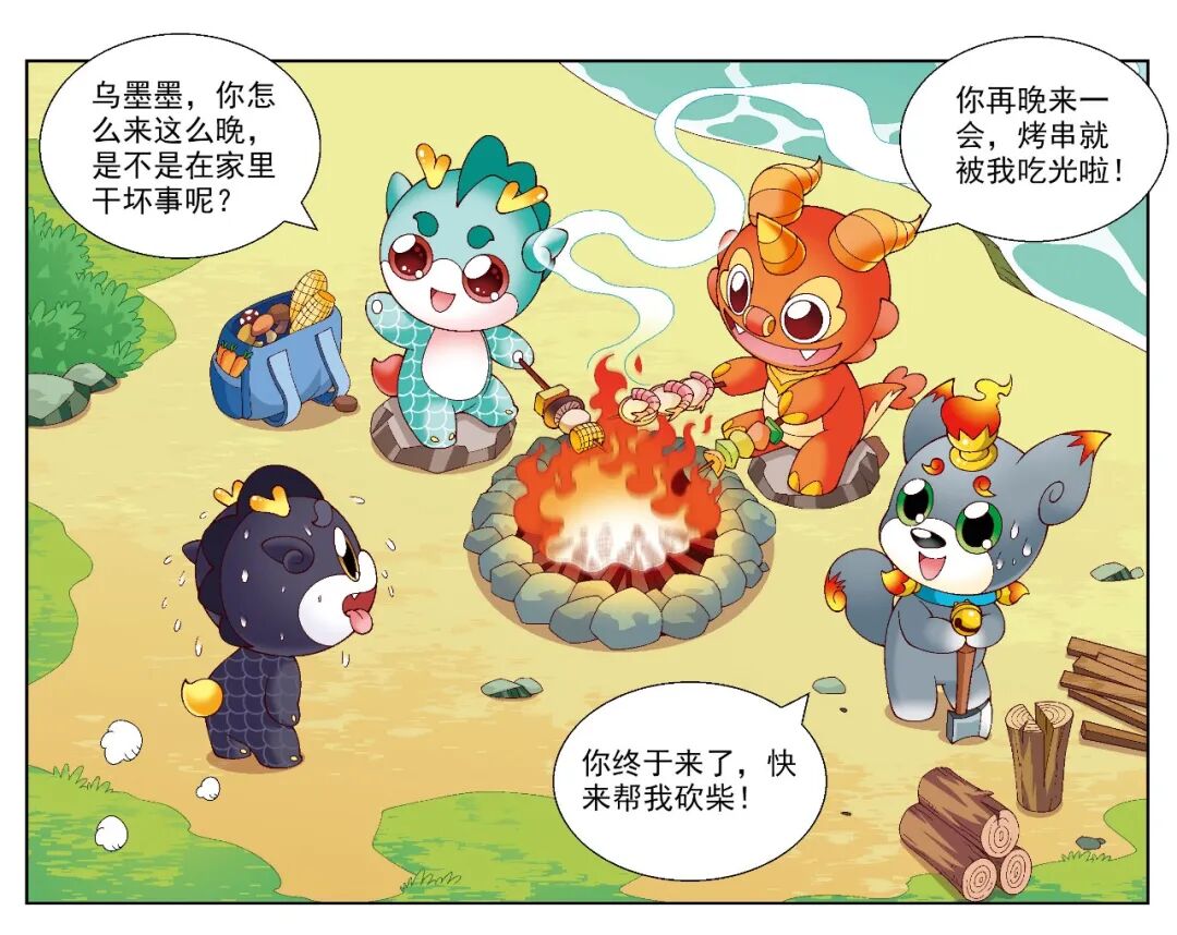 正在烤串的朋友们看到气喘吁吁的乌墨墨,都热情地招呼他快来一起吃烤串。