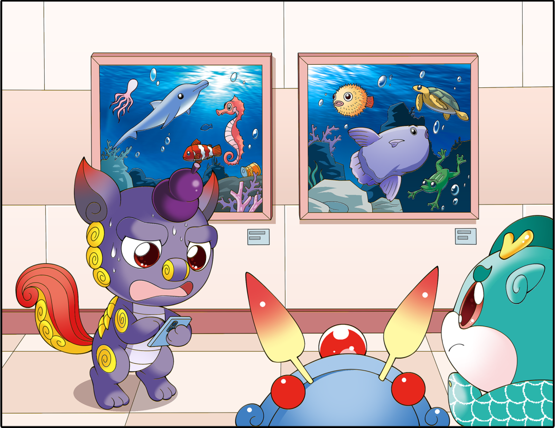 神兽们好奇地走进了展厅,映入眼帘的是两张海底动物的巨幅照片。