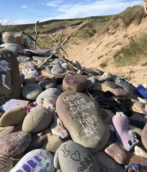 为了向多比致敬,哈利没有用魔杖而是亲手用铲子为多比挖了一个坟墓,然后刻上了墓志铭——“这里安睡着多比,一个自由的小精灵”。