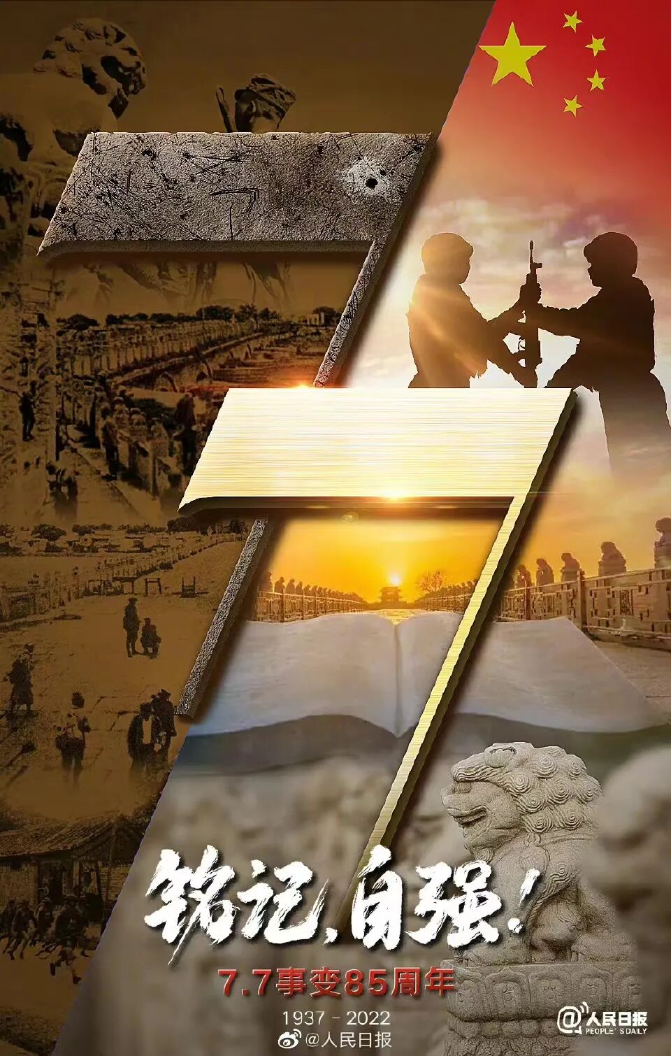七七事变85周年,我们铭记,我们警醒:珍惜和平,居安思危;永不敢忘吾辈自强!