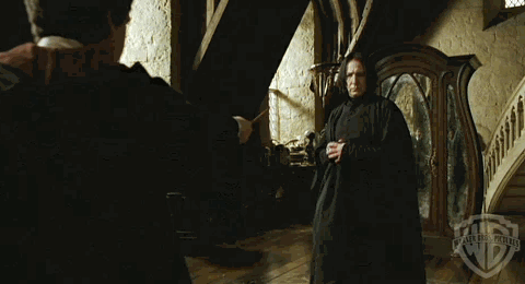 我们也会永远感激纳威当时成功喊出了“滑稽滑稽”,让我们看到了“身穿一件带花边的长裙,头戴一顶高帽子,帽子上有一只被虫蛀过的秃鹫,手里还提着一个红色的大袋子”的西弗勒斯·斯内普。