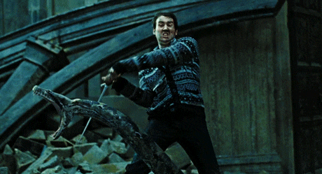 在这之后,他砍下了大蛇纳吉尼的脑袋,用格兰芬多的宝剑毁掉了这件魂器。