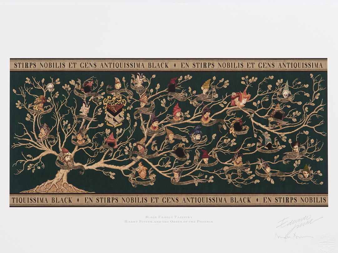著名的布莱克家族树形族谱挂毯上还有贝拉特里克斯·莱斯特兰奇,甚至德拉科·马尔福,他们都是家族成员或姻亲。