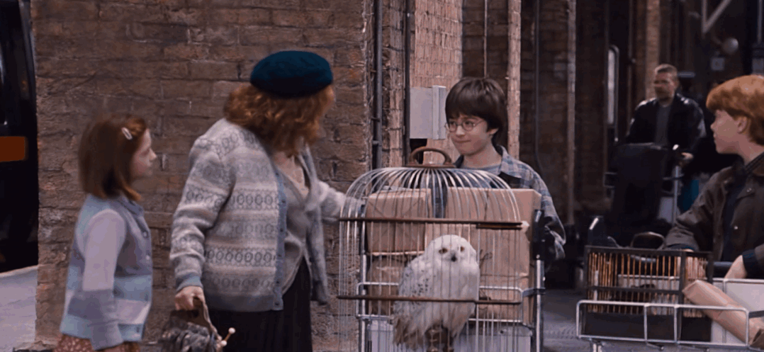 “九又四分之三站台,往这儿走!”当韦斯莱兄弟从第9和第10站台之间的砖墙消失时,哈利向韦斯莱夫人询问,她友善地告诉哈利应该怎么做。