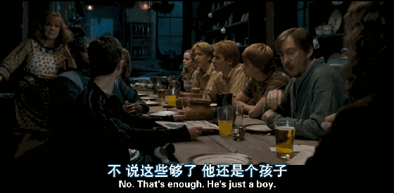 “你父亲知道他在干什么,他不会感谢你们搅乱凤凰社的大事!就是这样——这就是你们不是凤凰社成员的原因——你们不懂——有些东西是值得为之去死的!”
