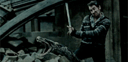 在战斗中,哈利挥舞着格兰芬多宝剑,并用它杀死了蛇怪。