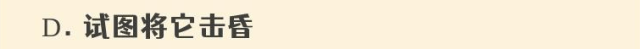 你试图击昏这个神奇动物,但是咒语却碰到了炸尾螺的坚甲,反弹了回来。接着,你击中了它没有甲片保护的腹部。这一招成功了,你顺利通过了炸尾螺。