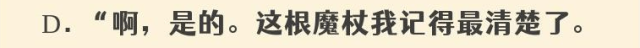 奥利凡德记得你的魔杖,因为这根魔杖杖芯的凤凰尾羽与伏地魔杖芯的凤凰尾羽来自同一只凤凰。过了一会儿,奥利凡德施法让魔杖喷出一股葡萄酒,并把魔杖还给了你。