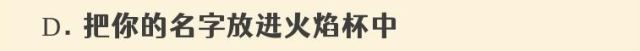 若想参赛,你需要将你的名字和学校放入火焰杯中。火焰杯将会从每个学校中各选出一名勇士参加三强争霸赛。