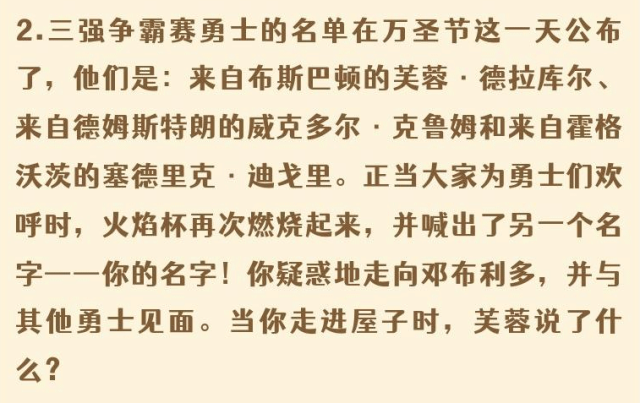 ·Ref: https://www.funtrivia.com/trivia-quiz/ForChildren/Can-You-Win-the-Triwizard-Tournament-333359.html.