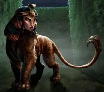 这是一种人头狮身的生物。由于她的谜语难以解答,她经常被用来守卫阵地,防止闲人通过。
