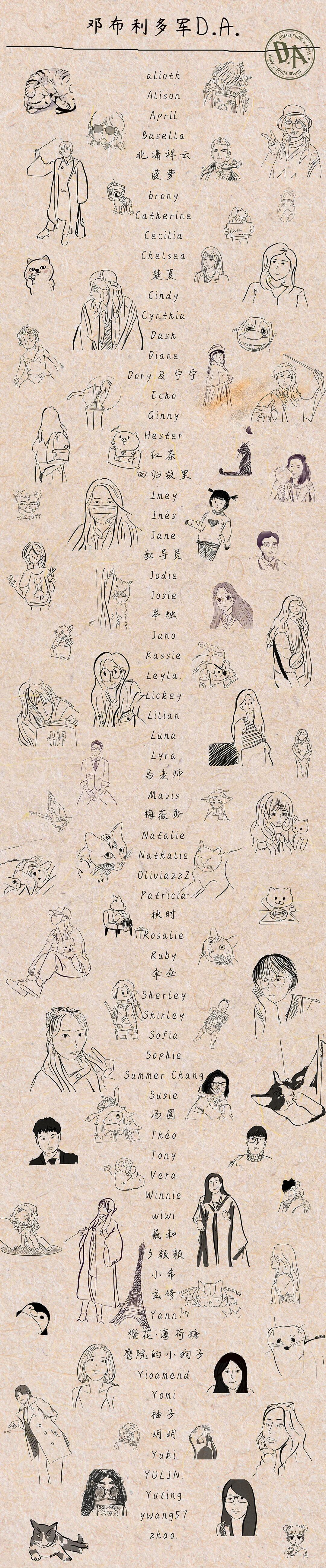 两个多月前,我们暗戳戳收集了所有正在为D.A.付出或是曾经积极发电的魔法理事会成员的头像/生活照/“阿尼马格斯”形态照等,由我们的YULIN.巫师绘制了一幅“D.A.全家福”长卷🥳。