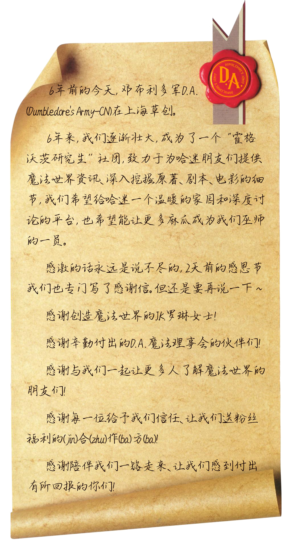 D.A.还会不断前行,感谢与你们在魔法和麻瓜世界里相遇,期待与大家一起奔赴下一个六年!💜