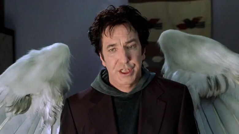 他接着分享了拍摄《怒犯天条》时的一些特别搞笑的时刻,《怒犯天条》是史密斯对宗教刻板印象的黑色幽默,里克曼在片中扮演一个名叫梅泰伦的天使。