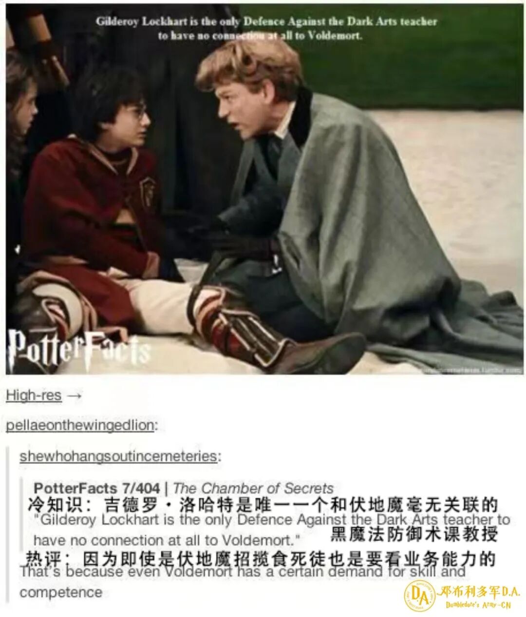 《黑魔法防御术》原本应该是霍格沃茨最有趣的课程之一,这门非常重要的课程旨在教授霍格沃茨学生防御魔咒。洛哈特作为黑魔法防御术老师的那段时间是灾难性的,然而他曾放出一群康沃尔的小精灵,使得教室里一片混乱,他被网友MrsSeverusSnape在Tumblr中疯狂玩梗,并在推特上热转。