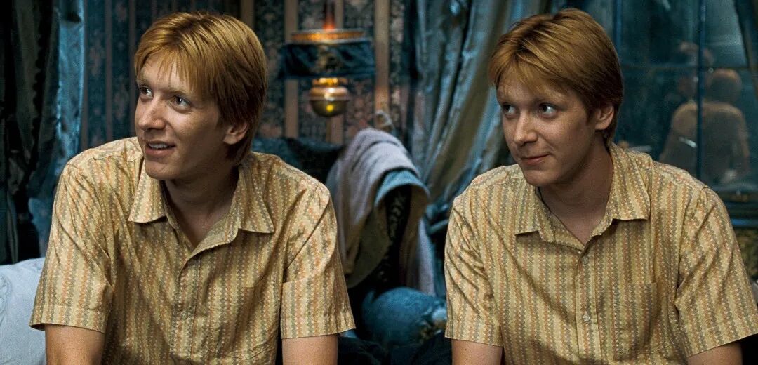 如果说《哈利·波特》中谁能不使用快乐咒就让所有人开怀大笑,大家一定会异口同声地回答到:韦斯莱双胞胎👯♂️!而将这份快乐延续到大荧幕上的,正是詹姆斯和奥利弗·菲尔普斯兄弟~
