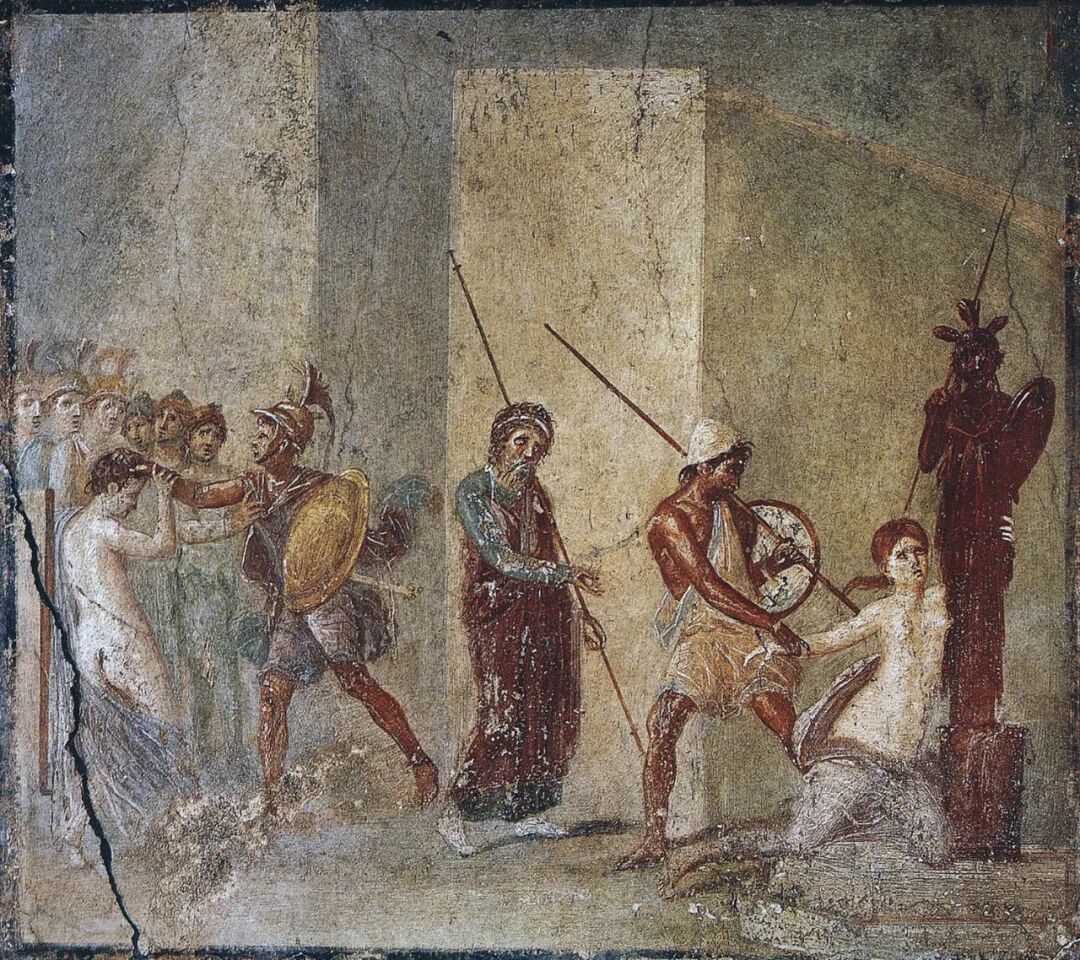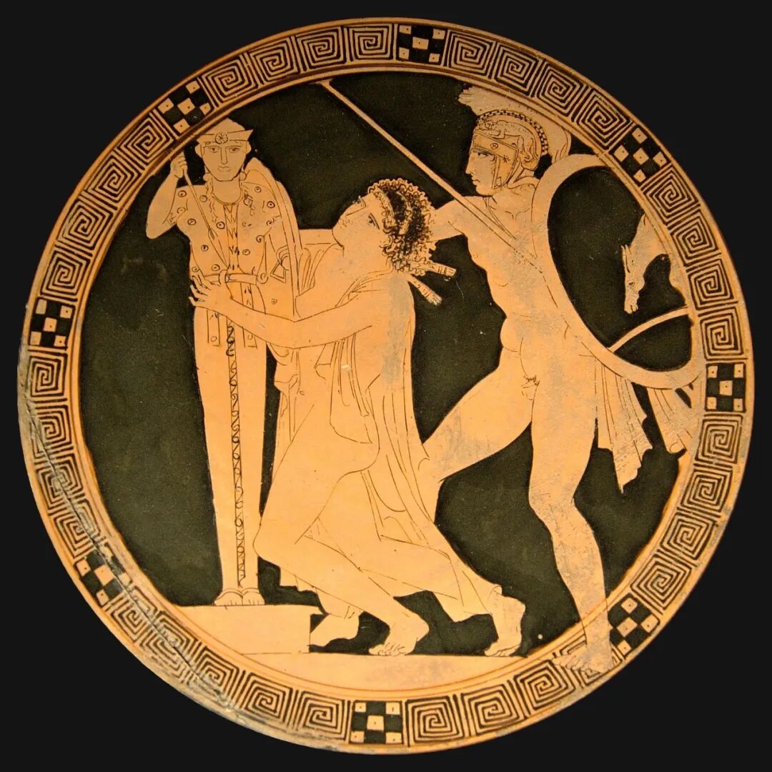 埃阿斯将卡珊德拉拖到普里阿摩斯面前