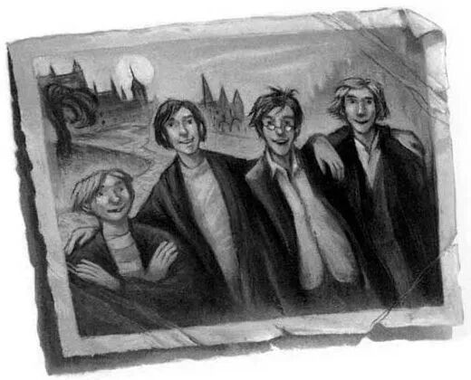 “不过,除去变形之外,那段时光我是前所未有的快乐。我第一次有了朋友,三个极好的朋友。小天狼星布莱克……小矮星彼得……当然啦,哈利,还有你爸爸——詹姆·波特”
