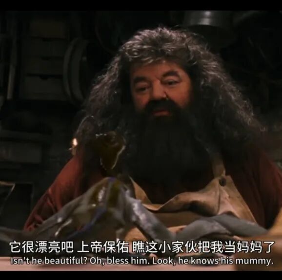 海格的“母性”在此刻到达了顶峰,正当他轻轻抚摸这只可爱的小龙之时,窗外的不速之客却打破了这一幸福的氛围。
