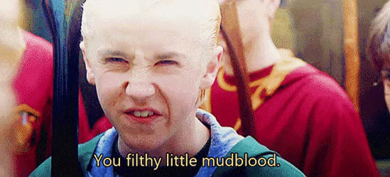 在第六本书中,德拉科和哭泣的桃金娘成了朋友,尽管她在世的时候是他口中的“泥巴种”,即出生在一个非魔法的家庭。