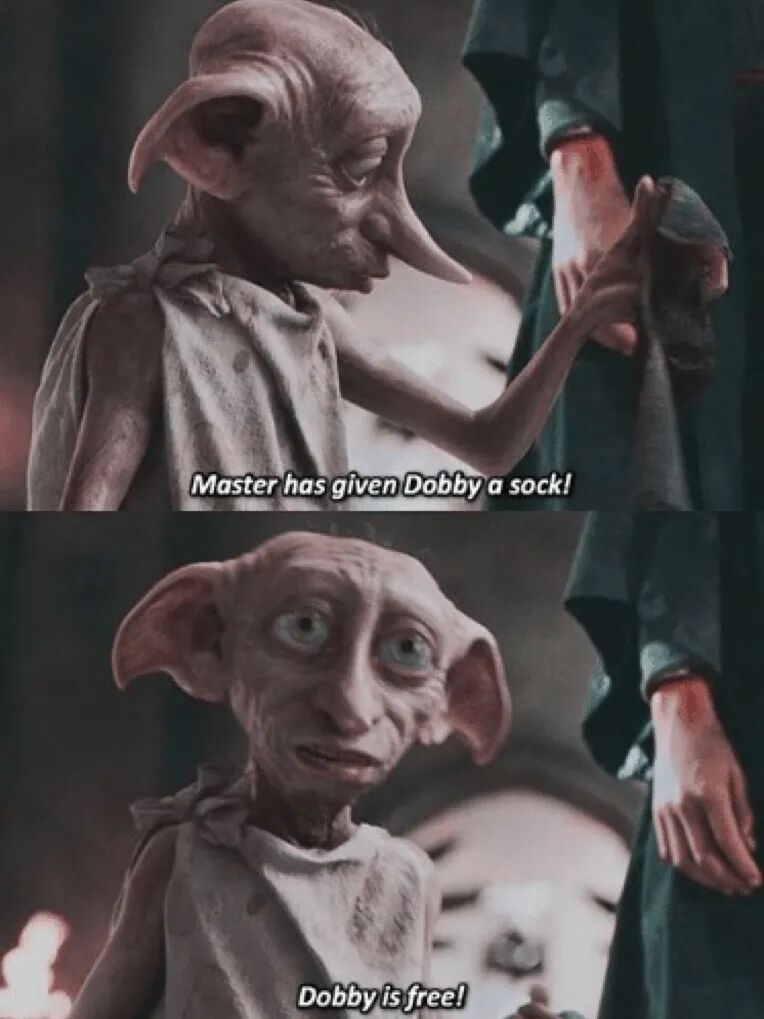 虽然没有留下证据(这个故事告诉我们,安装监控摄像头有多么重要),但气急败坏又心虚的卢修斯还是遭到了报应,而办了一些坏事但非常好心的家养小精灵也得到了自己的报偿:哈利灵机一动,把臭袜子塞进里德尔的日记本📓中,“算计”了卢修斯,借他之手解放了多比!