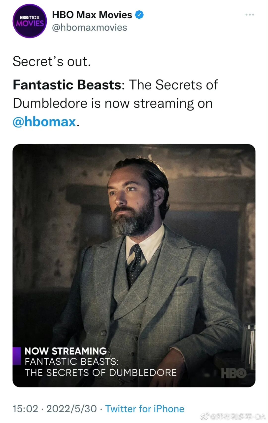 2022年5月30日,去年的今天,电影《神奇动物:邓布利多之谜》在华纳的流媒体平台HBO max正式上线!