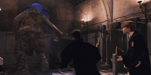 “好吧,我仍然要说算你们走运,没有几个一年级学生能同一个成年的巨怪展开较量的。你们每人为格兰芬多赢得了五分。我会把这件事通知邓布利多教授的。你们可以走了。”
